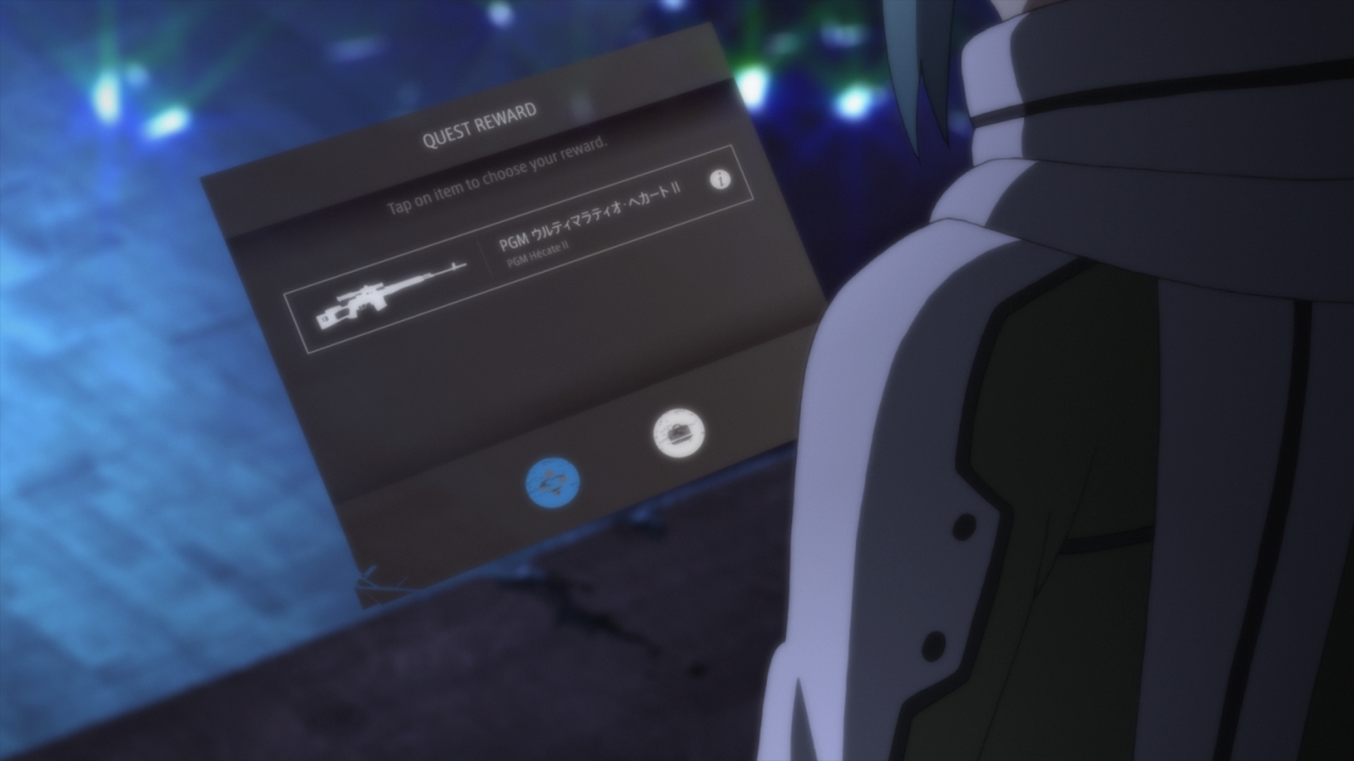 Sinon acquires the PGM Ultima Ratio Hecate II.