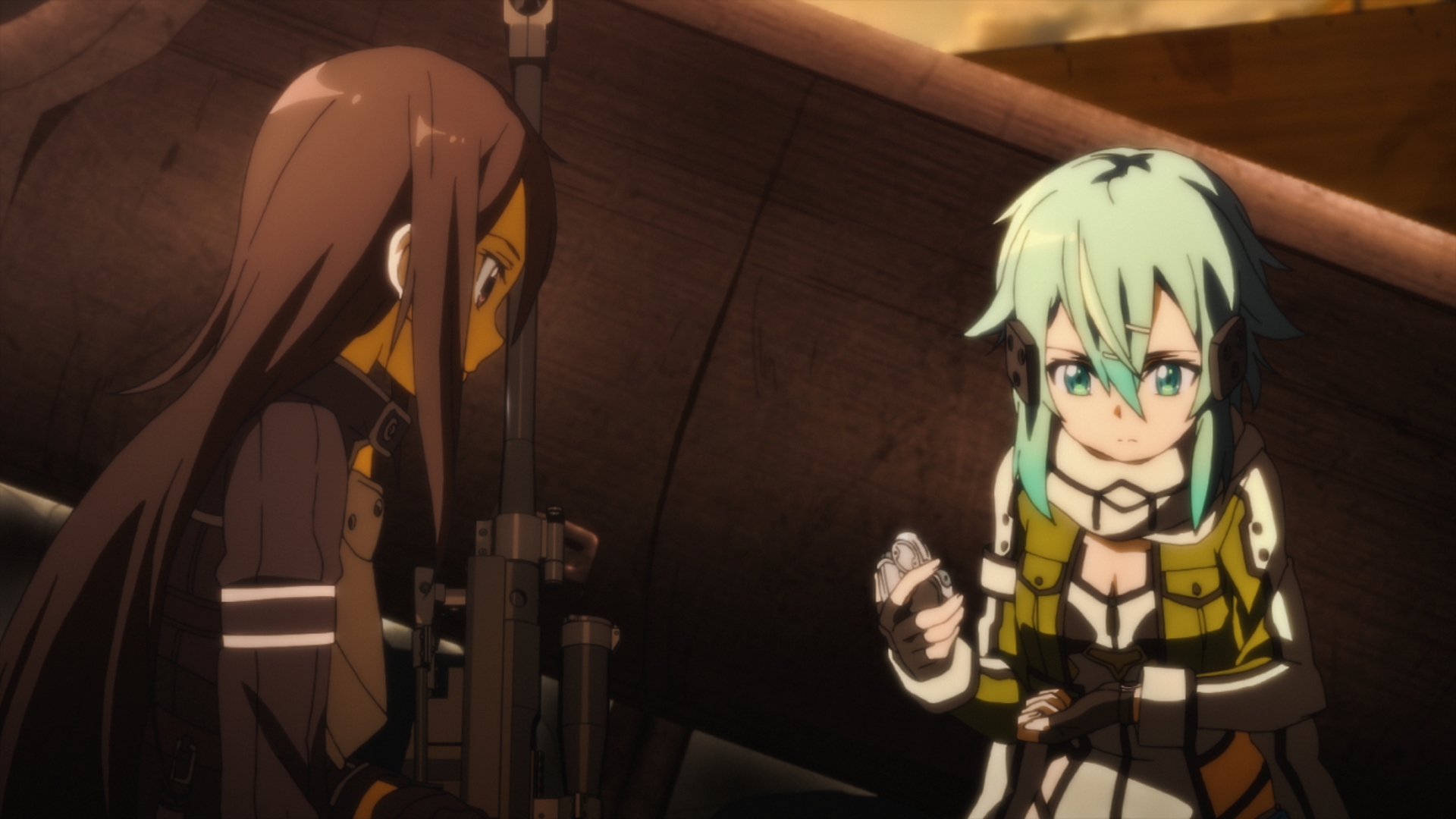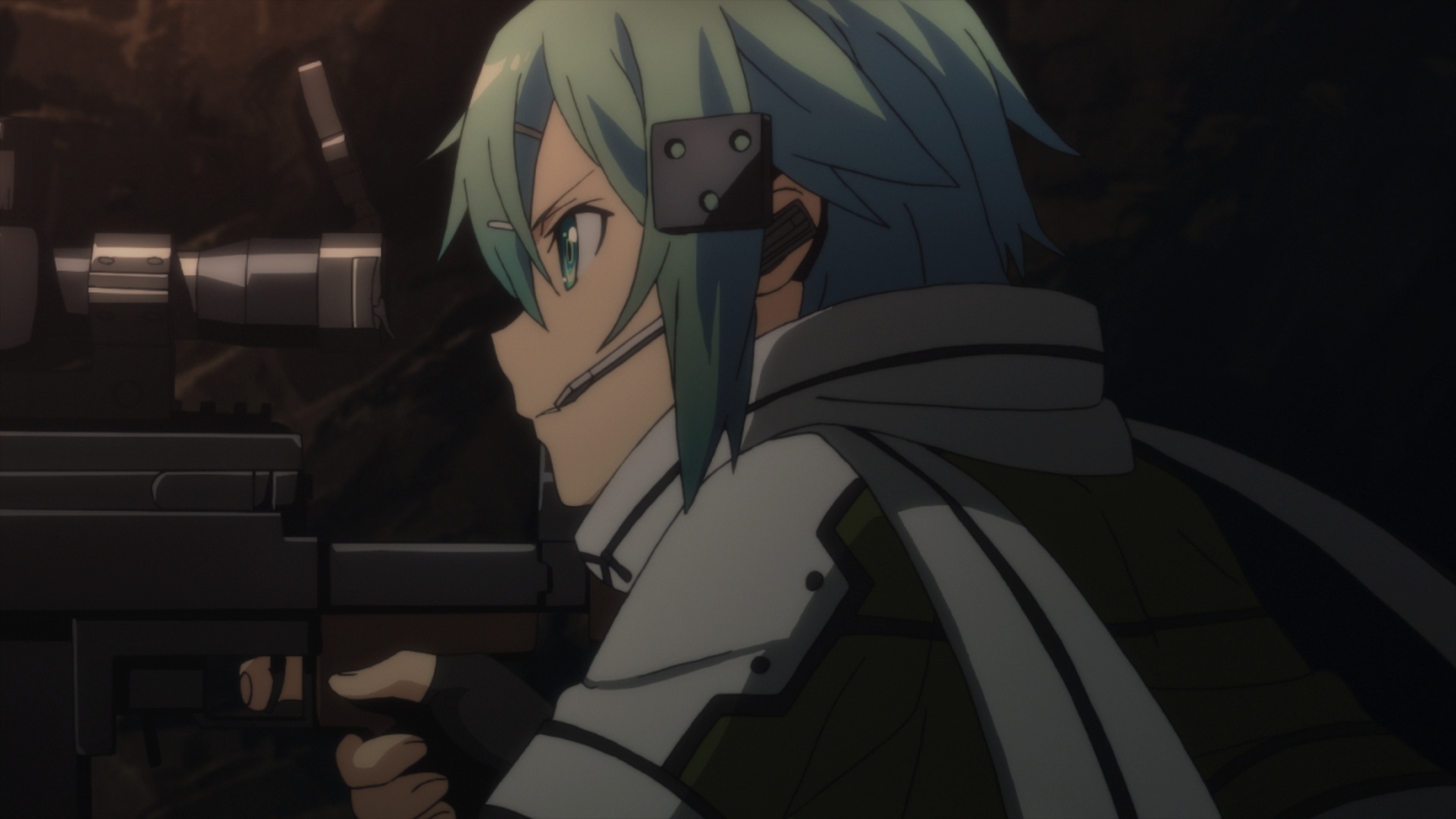 At Kirito's request Sinon attempts to take out Death Gun, who is about to eliminate a paralyzed Pale Rider.