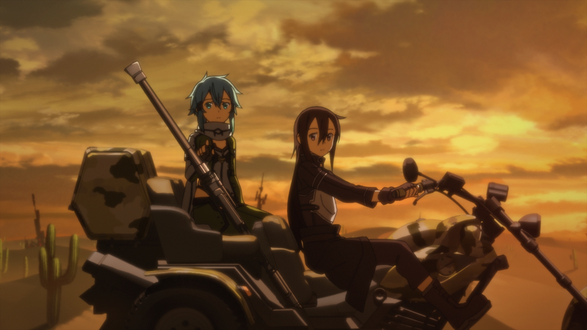Kirito meets Sinon, who lectures him on the world of GGO and advises him on what weapons to purchase at the weapons shop. They soon realize that they are about to nearly miss the deadline for entering the Bullet of Bullets tournament and rush to the Administrative Building on a rental buggy.